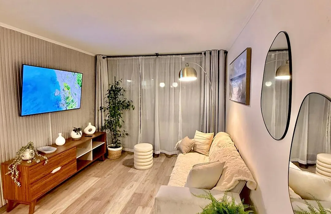 El apartamento Departamento con estacionamiento incluido, Ideal para ir de compras y conectar con puntos turísticos Santiago de Chile está situado a 2 km del Museo de Artes Visuales, y a unos 25 minutos a pie del Museo de Arte Contemporáneo de Santiago. También hay Wi-Fi para que los huéspedes puedan entretenerse o trabajar.